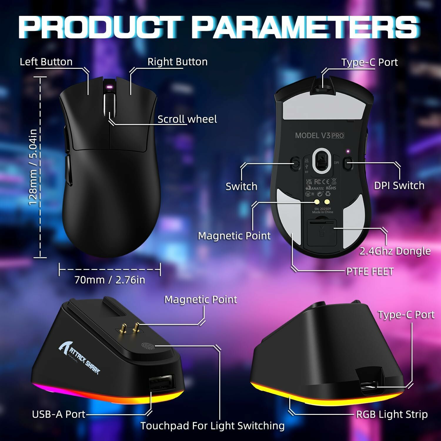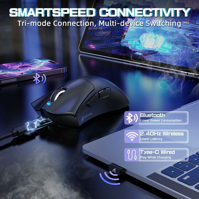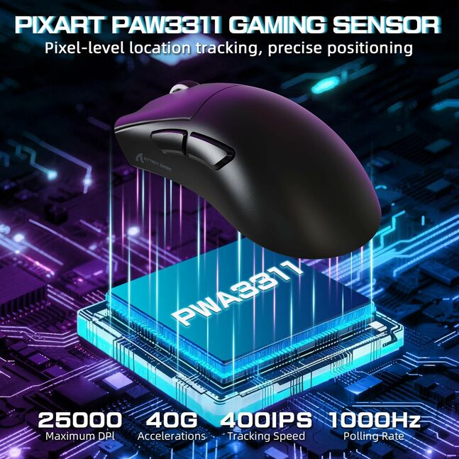 Attack Shark V3 Pro Wired Bluetooth Connections Gaming Mouse Berry Red