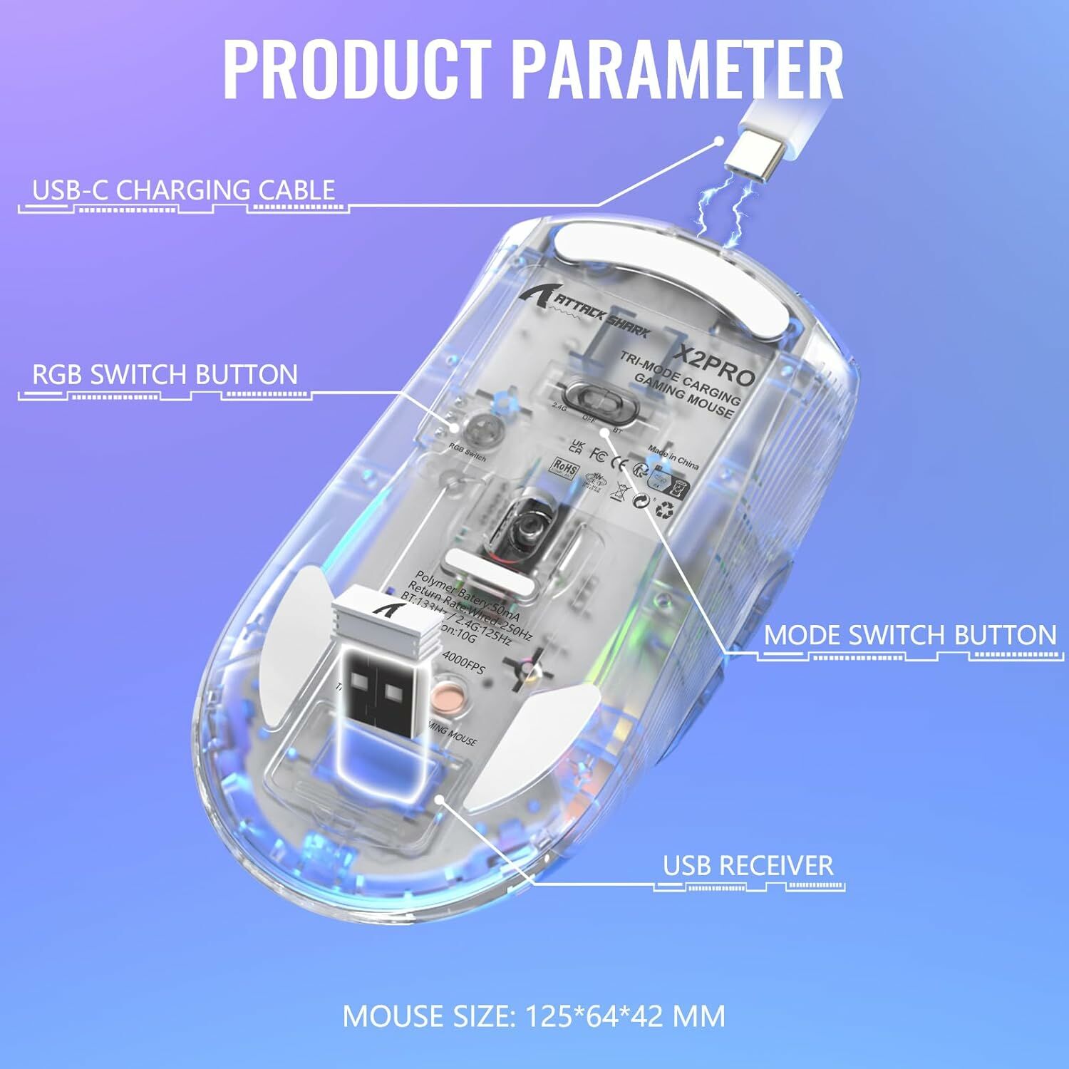 Attack Shark X2 Pro Wireless Mouse White